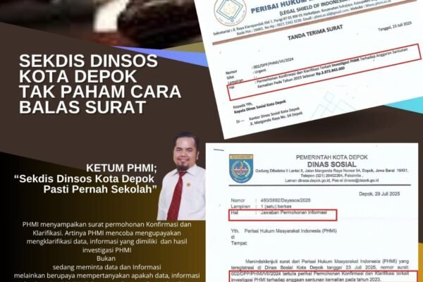 Depok, Newsgbn.com – PERISAI HUKUM MASYARAKAT INDONESIA (PHMI) mengirimkan surat permohonan Konfirmasi dan Klarifikasi terhadap Dinas Sosial Kota Depok dan telah diterima oleh pihak Dinsos kota Depok pada tanggal 23 Juli 2025. Adapun surat yang dilayangkan PHMI yaitu terkait Permohonan Konfirmasi dan Klarifikasi Terkait Investigasi PHMI Terhadap Anggaran Santunan Kematian Pada Tahun 2023…