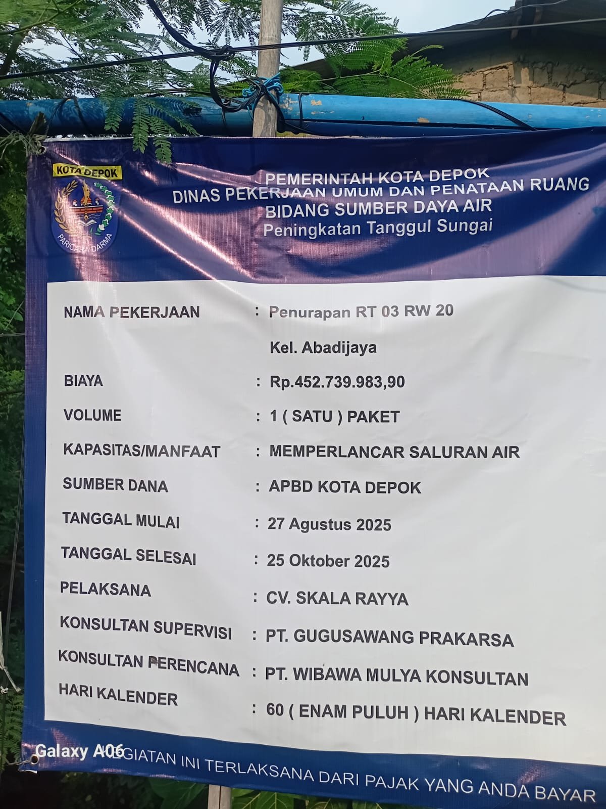 Mulya Konsultan,dengan menelan biaya 452.739.983.90 dengan memakai anggaran APBD sejak tanggal pelaksanaan 27 Agustus 2025 hingga 25 Oktober 2025 selama 60 hari kalender