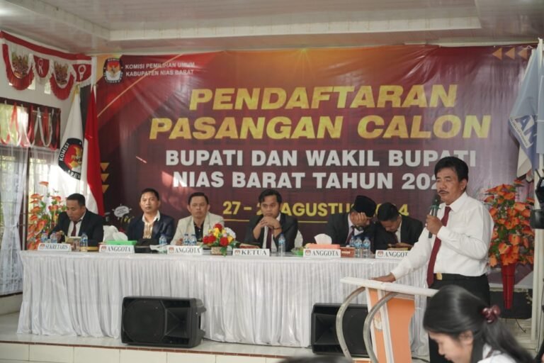 Pasangan Calon Bupati dan Wakil Bupati Nias Barat Khenoki Waruwu – Sabahati Gulo resmi mendaftarkan diri di KPU Nias Barat.