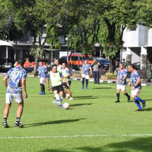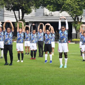 Kegiatan olahraga bersama ini diawali dengan senam peregangan, dilanjutkan pertandingan sepak bola.(tim)