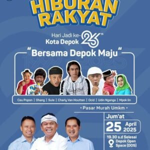 Hiburan rakyat Ini merupakan salah satu agenda dalam rangkaian HUT ke 26 Kota Depok. Walikota depok ingin mengajak seluruh komponen masyarakat depok, untuk melakukan suatu kegiatan yang dipimpin gubernur jawa barat, dedi mulyadi langsung,” ucap dadang wihana ketua panitia pondok kota depok.(rp)